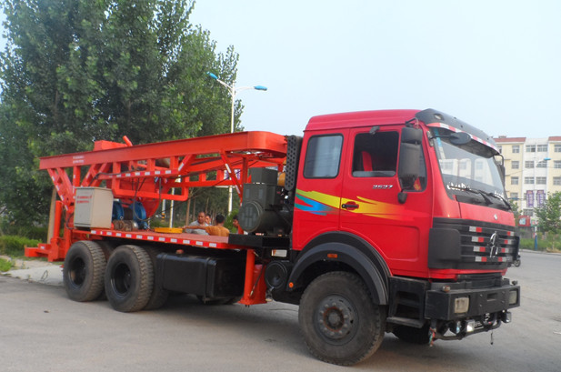 DZJ-1200型正循环钻机是将动力部分悬挂在钻架滑道内,并作上下滑动而进行钻孔工作的一种回转钻机,是灌注桩的理想成孔机械。它兼于潜水钻机和磨盘钻机于一身,同时配有三种变速齿轮,可变换(31转、66转、93转)三种速度,钻机在成孔速度,钻头压力、护臂,成孔垂直度适合地层环境等,得到大幅度提高从而使该钻机的使用性更强,适合地层更广泛。同时大幅度的降低了使用和维修成本,它适合淤泥、粘土、砂、砾、风化岩、页岩等多种复杂地层的钻孔施工。被广泛应用于建筑、水利、港口、电力、电讯、工程降水、水井、桥梁等工程基础施工中。